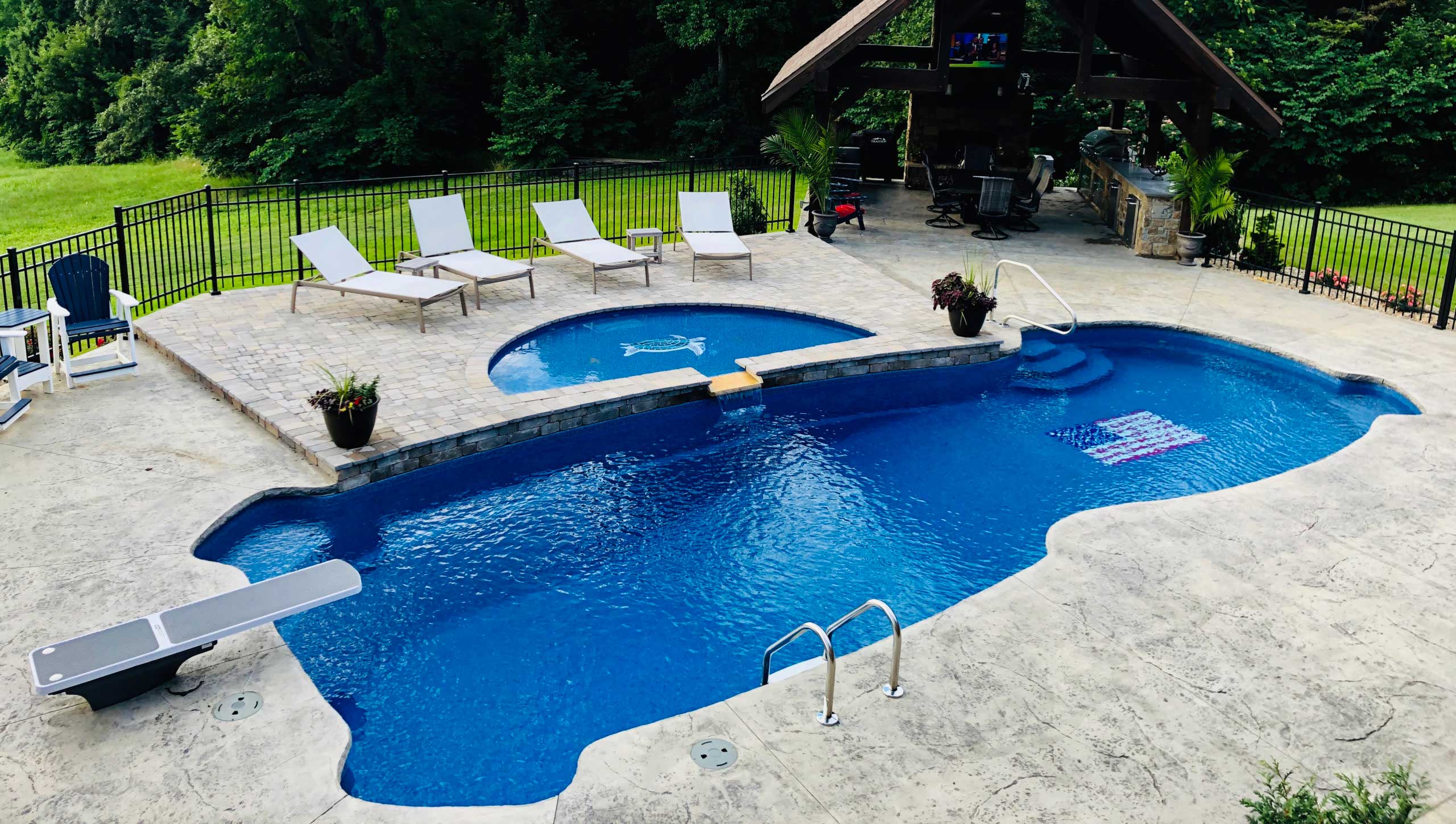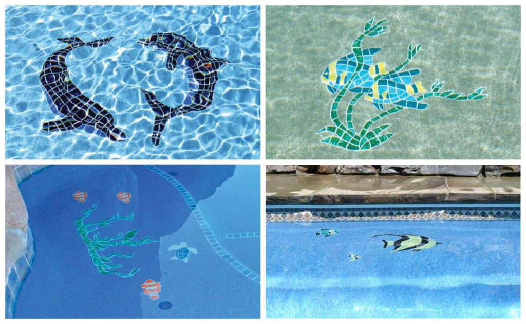Let your inner artist shine when selecting your pool mosaics; it’s your chance to enhance your pool with striking accents. A custom fiberglass pool mosaic can be created to match any pool style, from whimsical to modern chic. We provide tiles from Artistry in Mosaics and Custom Mosaics, Inc., two of our premier vendors for stunning mosaic pool patterns.