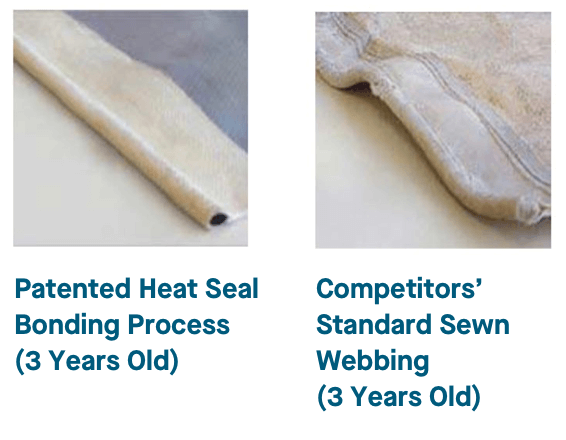 Heat-Sealed Webbing for Double the Strength: While most manufacturers only sew the webbing material to the cover, at Latham we offer both a sewn and a heat sealed process. This exclusive patented heat seal process ensures that the webbing is twice as strong and therefore will not fail over time like it will with other manufacturers. Independent lab tests show that our method is over twice as strong as competitive webbing sewn to a cover!